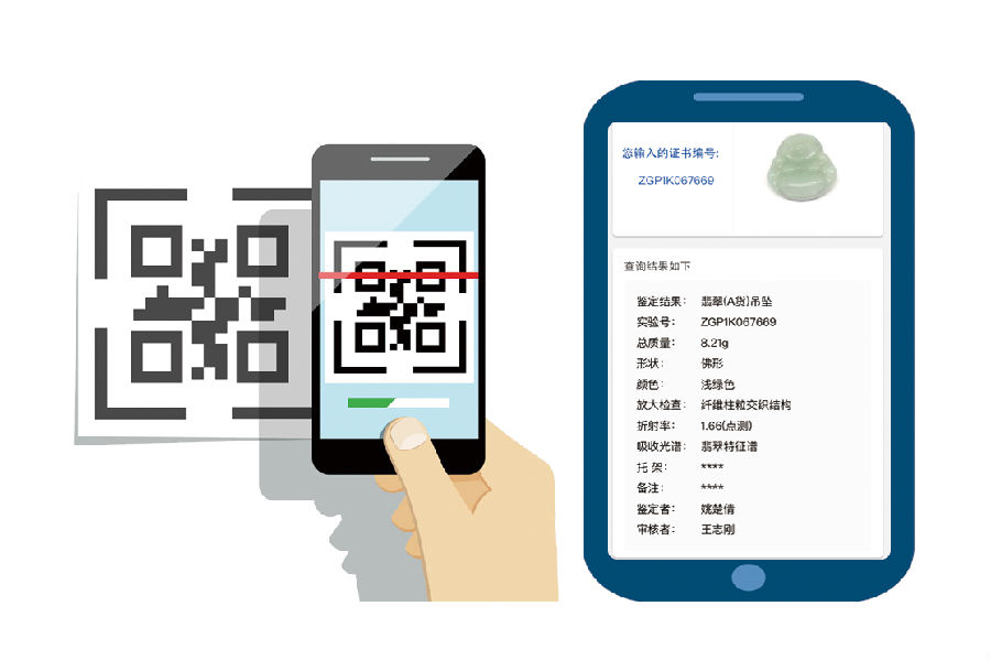 標簽二維碼:結合飾品手機查詢平臺,一物一碼,通過微信掃一掃即可查詢飾品信息。